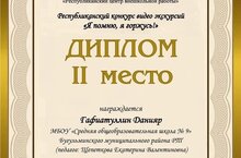По результатам Республиканского конкурса видеоэкскурсий «Я помню, я горжусь» Гафиатуллин Данияр, ученик 5а класса, занял 2 место в номинации «Их помним, ими гордимся» с работой, посвященной подвигу Газинура Гафиатуллина.Сыркина Мария, ученица 5б класса, была отмечена грамотой «За творческий подход». Ее видеоэкскурсия была посвящена Капитолине Андреевне Сидоркиной. Поздравляем юных краеведов