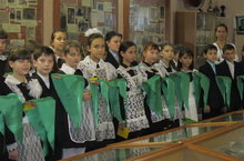 Сегодня в школе торжественный день: учащихся 5-х классов принимали в Союз наследников Татарстана. Мероприятие по традиции проходило в школьном историко-краеведческом музее. 44 учащихся были приняты в наследники Татарстана.