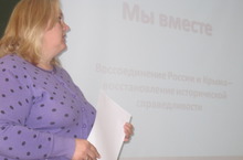В заключение урока учитель истории Ольга Александровна отметила: «Воссоединение России и Крыма - очень важное и значимое событие для всех россиян. Весь мир увидел, что Россия - сильное, независимое государство, способное защитить жизнь и свободу русскоязычных граждан. Мы гордимся своей страной и Президентом». -