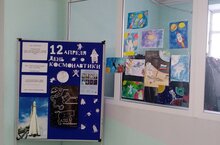 В школе прошла выставка рисунков ко Дню космонавтики.
