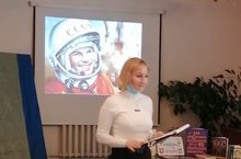 Библиотекари познакомили детей с историей возникновения праздника, рассказали о первом полете человека в космос, о космонавтах.
