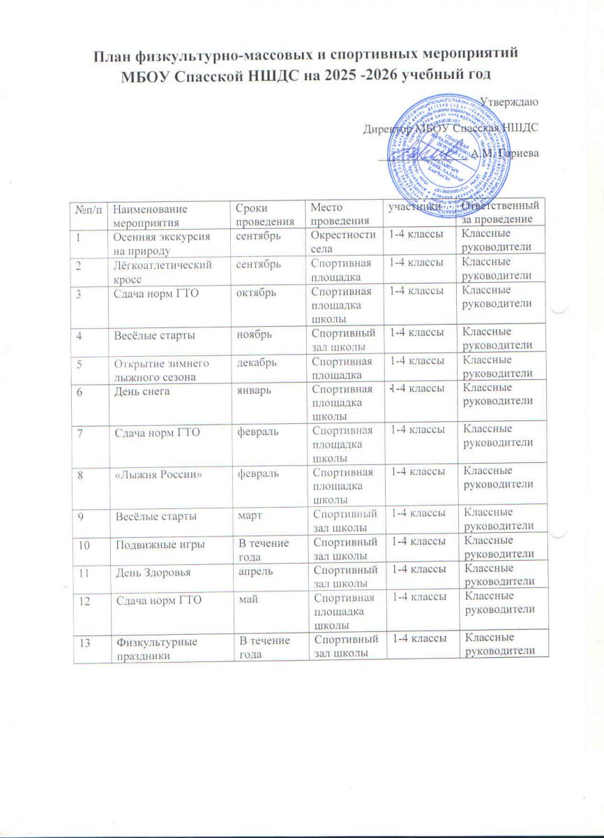План спортивно-массовых мероприятий