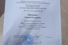 7 нче сыйныф укучысы Минибаева А.И. рус әдәбиятыннан Республика олимпиадасында катнашып призер дипломы алып кайтты. Азалияне һәм аны әзерләгән укытучы Зайнуллина Р.Д. зур уңышлары белән котлыйбыз. Киләчәктә тагын да зуррак уңышлар һәм сәламәтлек телибез.