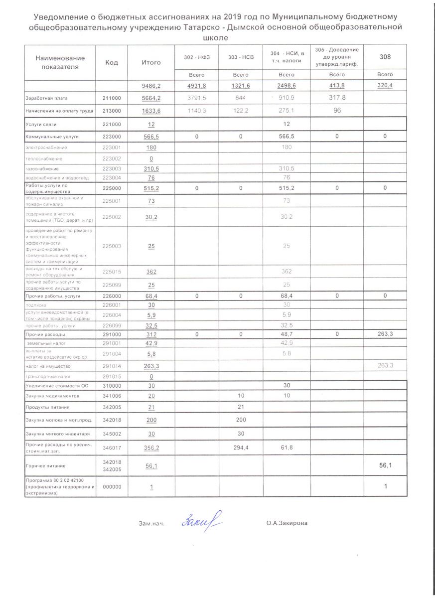 Бюджетное ассигнование на 2019 по МБОУ Татарской Дымской ООШ 001.jpg