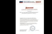За активное использование педагогическим коллективом возможностей современных информационных технологий и цифровых предметно-методических материалов предоставленных в рамках проекта "Школа цифрового века" МБОУ Восточная средняя общеобразовательная школа награждена дипломом.