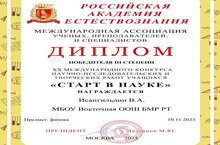 Обучающиеся МБОУ Восточной основной школы приняли участие в XX международном конкрсе научно-исследовательских и творческих работ работ учащихся "Старт в науке". Ученик 8 класса Исангильдин Вадим награжден дипломом победителя III степени. Руководитель проекта Мустаева Динара Линаровна.
