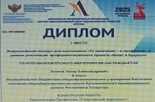 6 сентября ученик 8 класса Хохлов Захар принял участие во Всероссийском конкурсе для школьников «От увлечения к профессии» в рамках реализации профориентационного проекта «Билет в будущее». Конкурсная работа: презентация «Профессия — спортивный журналист», занял 1 место, руководитель — учитель физической культуры Абрамова Ирина Николаевна.