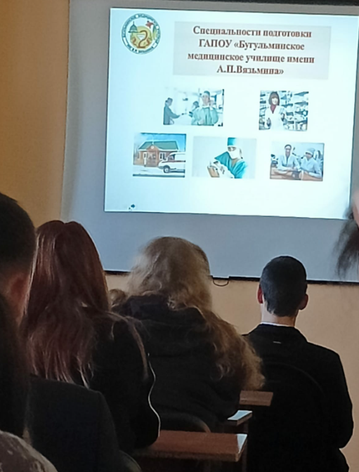 11 мая 2023 г в школе для 8-9 классов прошла профориентационная встреча с представителем Государственного автономного профессионального образовательного учреждения "Бугульминский аграрный колледж". Учащихся ознакомили с основными направлениями профессий и специальностями колледжа, правилами приема документов, сроках обучения. Ребята задавали интересующие вопросы.