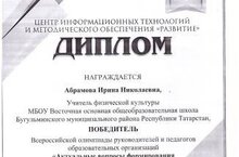 22 октября 2022 года прошла Всероссийская олимпиада руководителей и педагогов образовательных организаций "Актуальные вопросы формирования функциональной грамотности школьников в условиях реализации ФГОС", в рамках научно-практической конференции "Профессиональная компетентность педагога". Учитель физической культуры и ОБЖ, нашей школы стала победителей олимпиады.