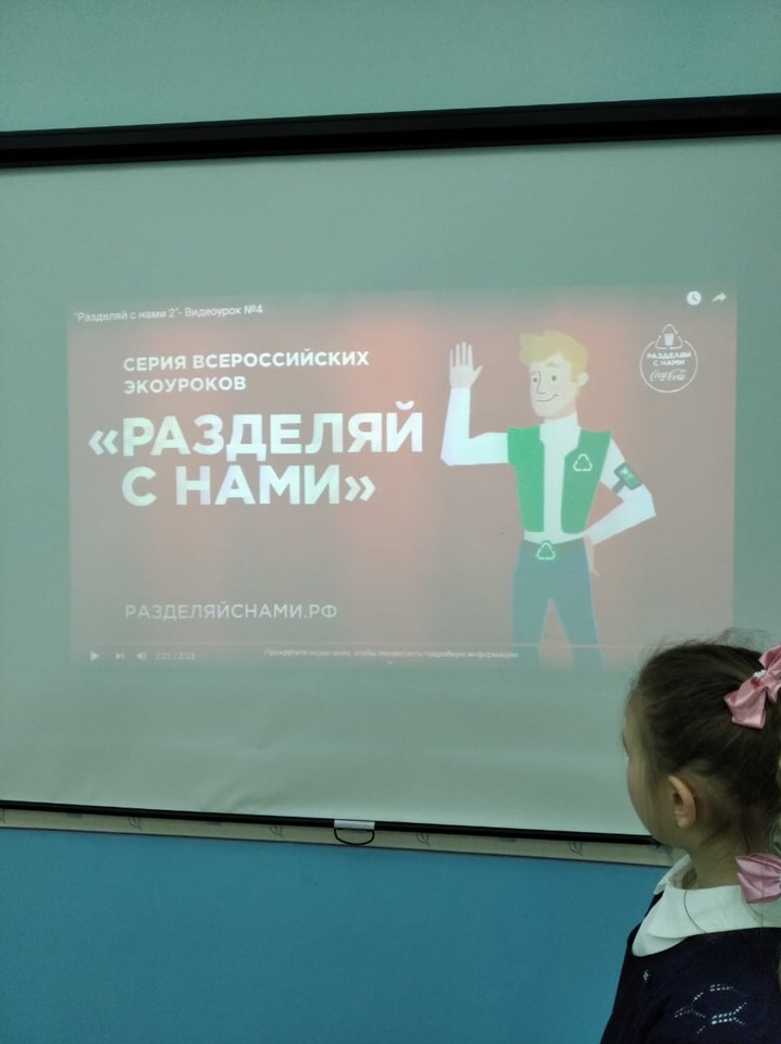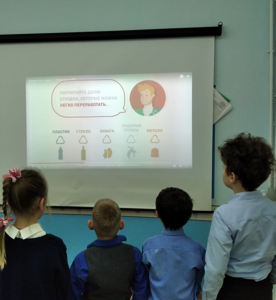 3. Для учащихся 1 и 3 классов был проведен урок экологической осознанности, где учащиеся изучили видеоролик "Разделяй с нами" о перерaботке отходов и поделились своими знаниями со сверстниками.