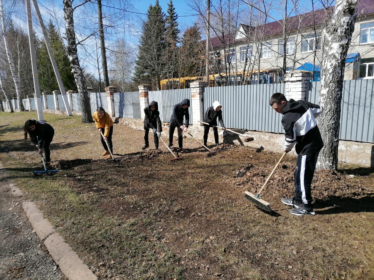 22 нче апрель мәктәптә язгы өмә булып узды, анда 5-9 нчы сыйныф укучылары, шул исәптән укытучылар һәм мәктәп персоналы катнашты. Өмәне үткәрү өчен территорияне генераль җыештыру буенча чаралар планы төзелде. Кирәкле инвентарь белән коралланып, барысы да мәктәп территориясен тәртипкә китерделәр: юлларны кар көртләреннән чистарттылар, чүп-чар җыйдылар, клумбаларны тәртипкә китерделәр, үз участокларын себерделәр. -