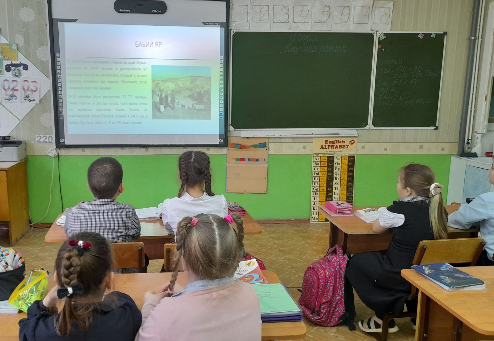 Ежегодно 19 апреля в нашей школе проводится День единых действий в память о геноциде советского народа нацистами. Основная задача - рассказать о том, что у нацизма не было обратной «светлой» стороны: мирные жители оккупированных территорий подвергались массовому геноциду со стороны захватчиков. В память о геноциде советского народа в годы войны в нашей школе прошли классные часы. Юнармейцы нашей школы подготовили краткие выступления о жертвах геноцида, посмотрели документальный фильм об этих фактах, узнали о жестоком обращении с партизанами и разведчиками, местными жителями во время оккупации.Ел саен 19 нчы апрель көнне безнең мәктәптә совет халкының геноциды истәлегенә нацистлар тарафыннан Бердәм гамәлләр көне үткәрелә. Төп бурыч-милләтчелекнең кире "якты" ягы булмавын сөйләү: оккупацияләнгән территорияләрнең тыныч кешеләре илбасарларның күпләп геноцидка дучар ителгән. Сугыш елларында совет халкының геноциды истәлегенә безнең мәктәптә сыйныф сәгатьләре үтте. Безнең мәктәпнең яшь армиячеләре геноцид корбаннары турында кыскача чыгышлар әзерләделәр. Бу фактлар турында документаль фильм карадылар, оккупация вакытында партизаннар һәм разведчиклар, җирле халык белән рәхимсез мөгамәлә турында белделәр.