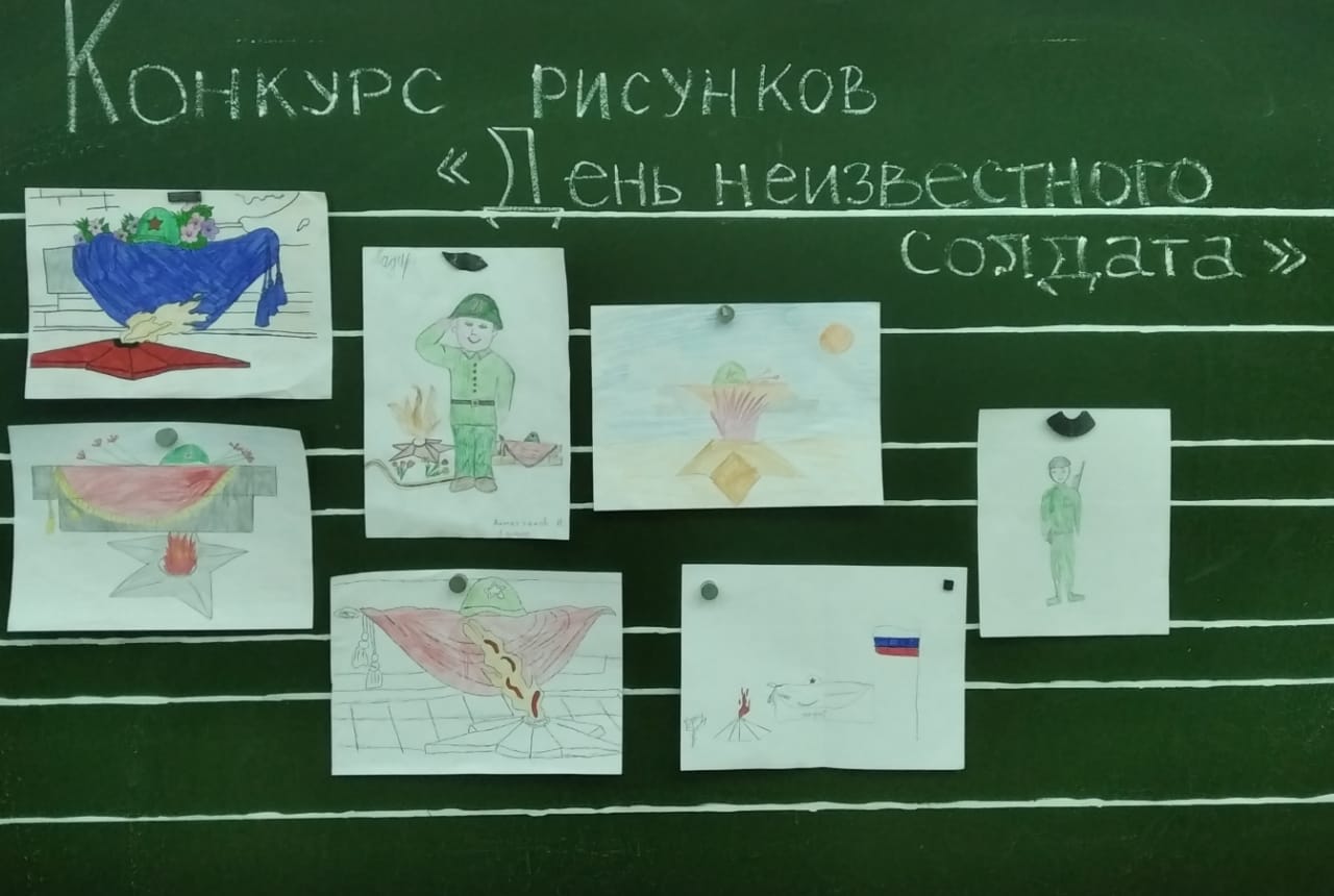 3 декабря в России отмечают День Неизвестного солдата. В школе прошли классные часы. Учащиеся почтили память воинов минутой молчания. Учителя рассказали учащимся о бессмертном подвиге советских людей, о героической защите от фашистских захватчиков, о солдатах, не вернувшихся с войны, о поисковых отрядах, братских могилах, памятниках Неизвестному солдату в разных уголках России. Среди учащихся начальных классов проведён конкурс рисунков. Рисунки отражали память народа в эпоху военных лет. Дети старались передать