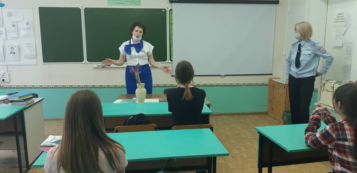 Сегодня 18 мая 2021 года в целях предупреждения правонарушений в сфере безопасности дорожного движения сотрудники ГИБДД встретились с обучающимися нашей школы.«Дорожно-транспортные происшествия являются основной причиной травматизма среди молодых людей. Не все осознают важность этой проблемы, но коснуться она может каждого из нас. Все мы в той или иной роли участники дорожного движения: кто-то пешеход или пассажир автомобиля, а кто-то уже и сам водитель» – с такими словами обратился в начале встречи к ребятам инспектора ГИБДД.