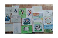 В творческом конкурсе - конкурс рисунков на футбольную тему, приняли участие самые творческие ребята нашей школы. Работы можно оценить на выставке у спортзала.