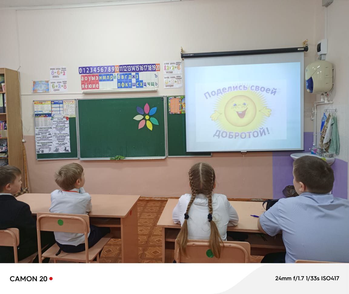 В начальных классах учителя провели беседу «Дарите людям доброту!», посвященную Международному дню инвалидов. Ребята посмотрели мультфильм "Цветик-Семицветик", обсудили поведение героев и изготовили большую аппликацию «Цветик-семицветик» .