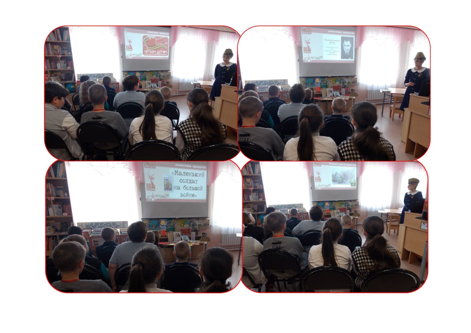 В рамках Международной акции «Читаем детям о войне» с учащимися 1-5 классов организована беседа по повести Валентина Катаева «Сын полка». Сельский библиотекарь на примере главного героя книги Вани Солнцева рассказала ребятам о жизни их ровесников в тяжёлые годы Великой Отечественной войны. Вспомнив сюжет книги, учащиеся ответили на ряд вопросов по содержанию повести, при этом обсудив такие понятия как сострадание, доброта, ответственность, целеустремленность и любовь к Родине. Внимание ребят было обращено на книжную выставку «Читаем о войне», где представлены рассказы о детях, переживших военное лихолетье и вместе со взрослыми защитивших Родину от фашистских захватчиков. Во время беседы на экран проецировались иллюстрации и фотографии военных лет, звучали фрагменты песен военных лет.