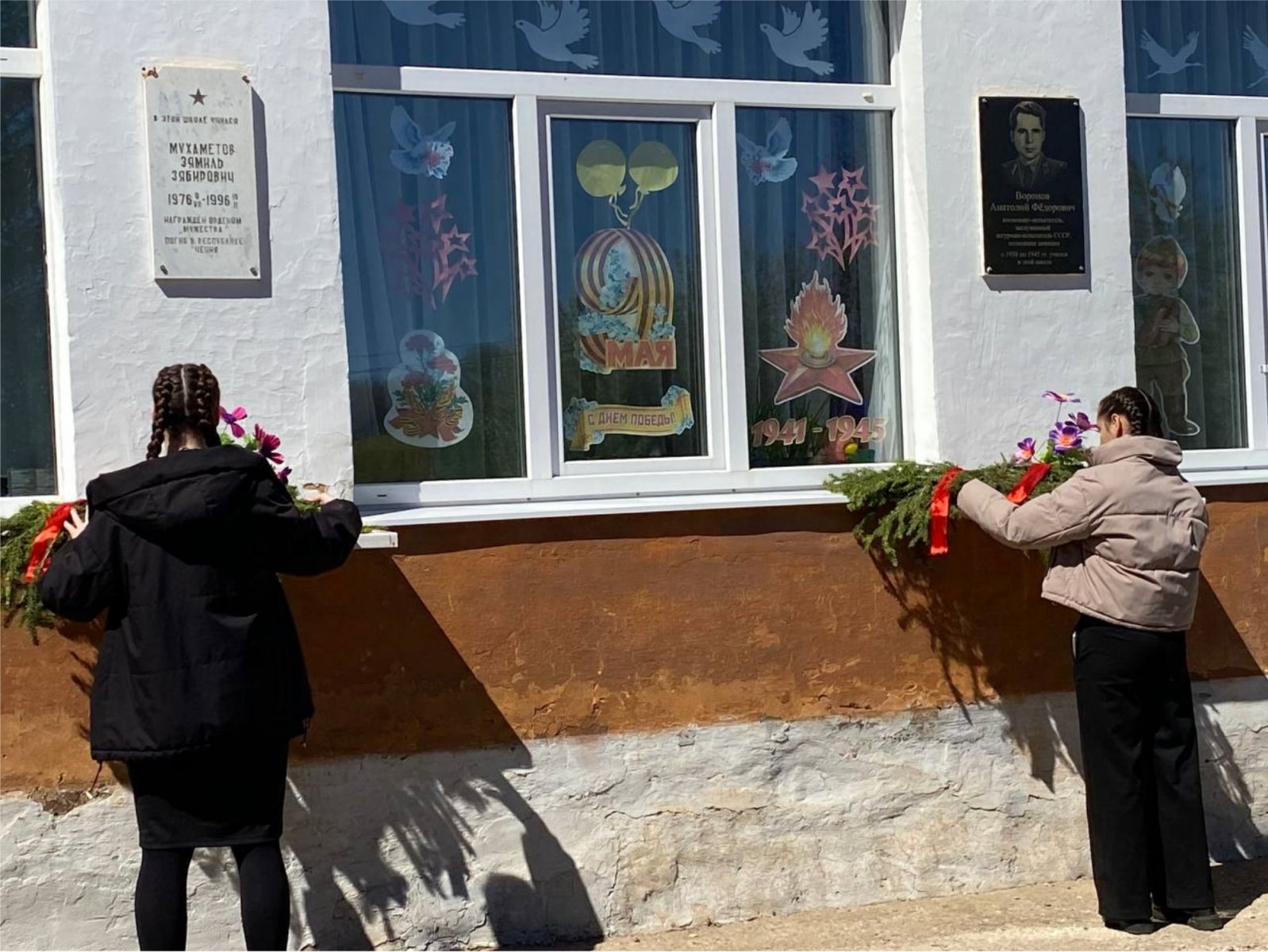 В Зелено-Рощинской ООШ состоялась акция «Мы помним всех солдат» – символ уважения к подвигу тех, кто защищал нашу Родину. Учащиеся возложили венки к памятным мемориальным доскам: космонавту-испытателя А. Воронову, а также погибшим землякам З. Мухаметову и Э. Газизову, исполнявших служебный долг за пределами Отечества. Мир и созидание – заповедь наших предков, которую мы должны свято исполнять, беречь и защищать историческую память, духовные ценности и исконные традиции.