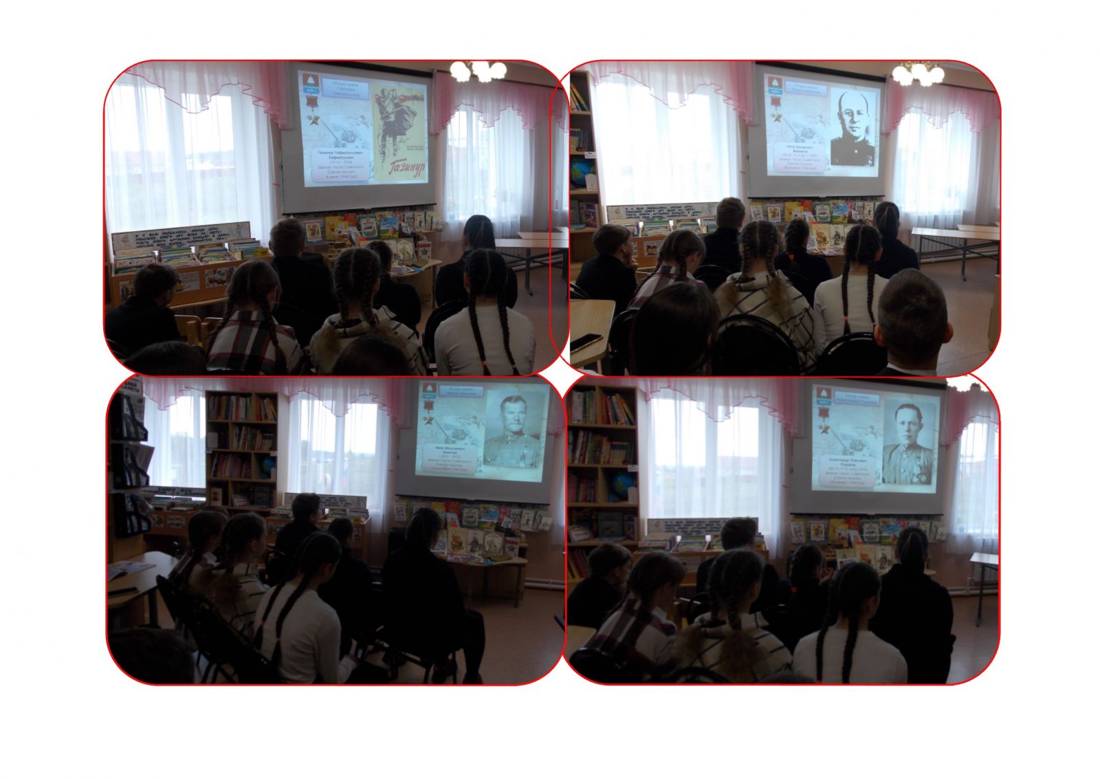 В канун Дня памяти и скорби в сельской библиотеке прошел историко-виртуальный ретро-взгляд «Герои родного города», из которого ученики школы смогли узнать о тяжелой, кровопролитной Великой Отечественной войне, о боевых подвигах бугульминцев, о людях, которые оставались и работали в тылу. Рассказ библиотекаря дополняли фотодокументы фронтовиков и тыловиков, взятых из книг краеведческого характера, которые раскрывают сложный военный период для Бугульмы и района. В заключение участники историко-виртуального ретро-взгляда минутой молчания почтили память воинов, погибших на фронтах войны.