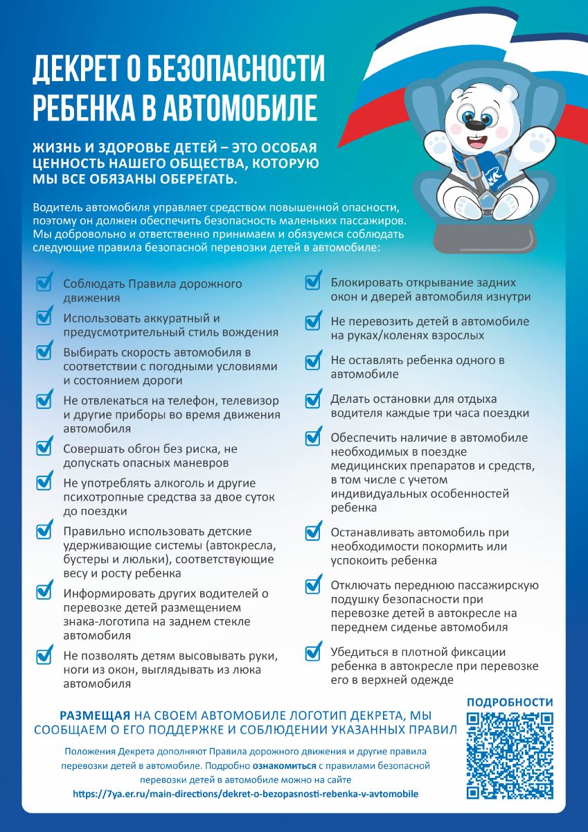 Размещаем публичное уведомление о присоединении к Меморандуму на своих официальных ресурсах в сети «Интернет» и соц. сетях со ссылкой на страницу акции «Везу детей безопасно!»https://7ya.er.ru/main-directions/dekret-o-bezopasnos (ссылка на Меморандум Везу детей безопасно!)