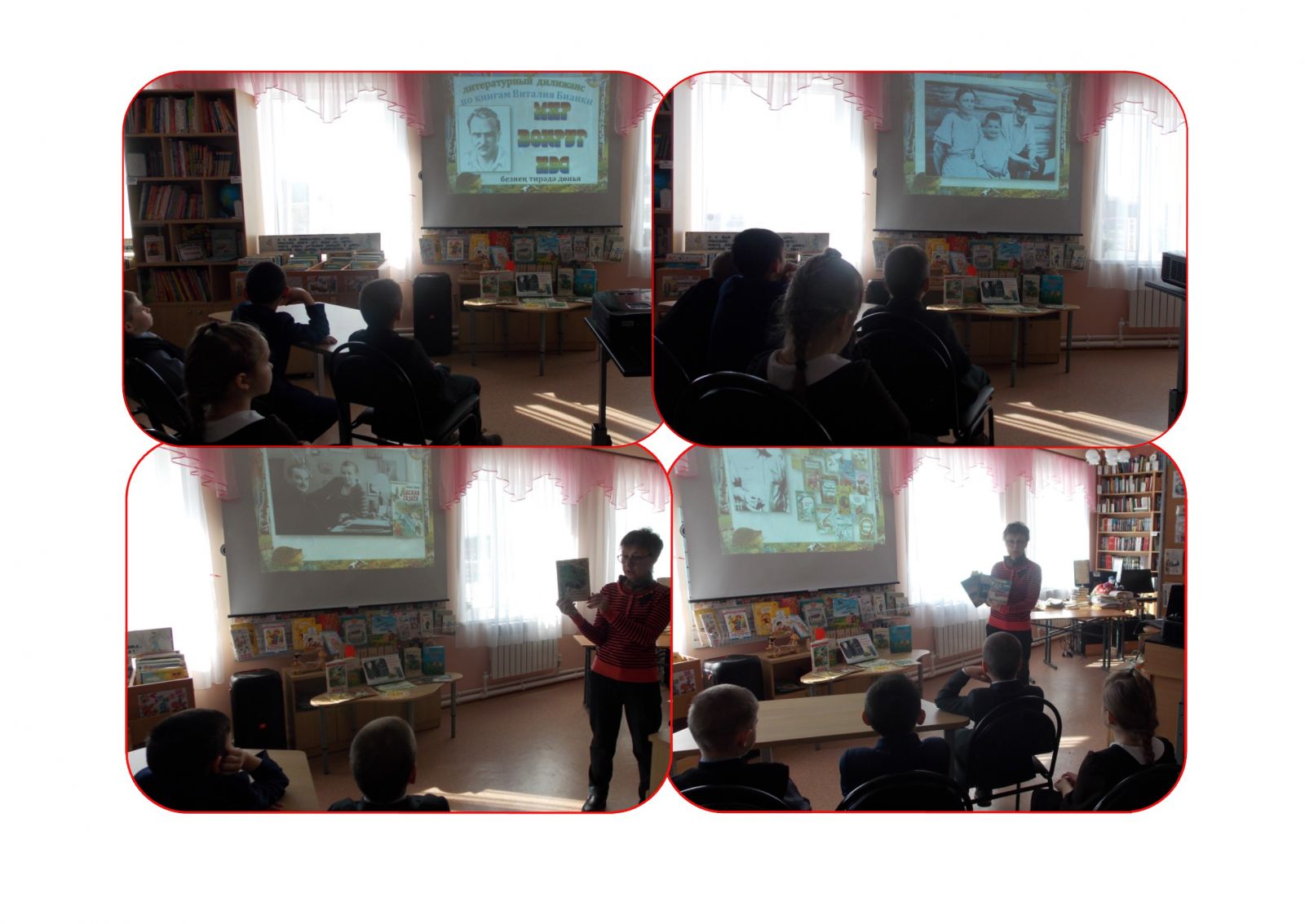 Учащиеся 1-4 классов совершили путешествие по книгам Виталия Бианки на литературном дилижансе «Мир вокруг нас». Сначала сельский библиотекарь рассказала о жизненном пути писателя-натуралиста, с событиями, оказавшими влияние на его литературную деятельность. Затем путешествие продолжилось литературной викториной с этапами: «Птичья галерея», где по фотографии нужно было узнать птицу; «Угадай кто это?» – по описанию героя произведения детям нужно было вспомнить его название. Далее внимание читателей было обращено на выставку «Лесные полянки Виталия Бианки», где расположились книги, помогающие узнать природу, бережно относиться к ей, любить и охранять всё живое.