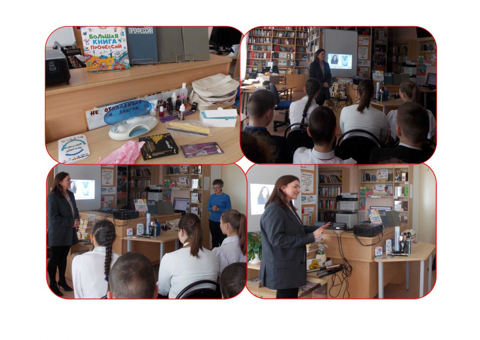 Учащиеся 7-9 классов были приглашены в сельскую библиотеку на библио-журфикс энциклопедии Натальи и Сергея Гордиенко «Большая книга профессий», где в нескучной форме даются представления о многих распространённых и важных профессиях, и советы: как среди множества специальностей найти ту, что станет интересным и любимым занятием на всю жизнь. Кроме этого, пригашенная на встречу директор салона красоты «Vlanse» Наталья Новичкова поделилась секретами профессии маникюриста и парикмахера, дала ценные советы по уходу за руками и волосами, озвучила о модных стрижках и маникюре 2024 года.
