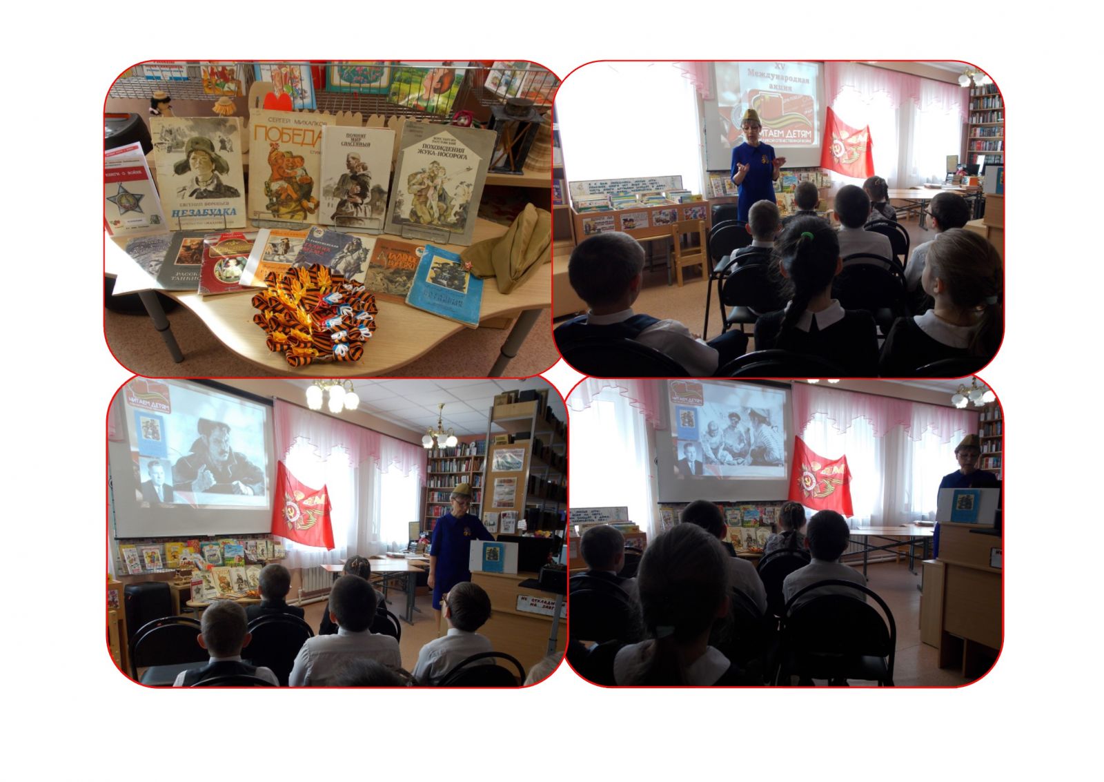 В рамках проведения Международной акции «Читаем детям о войне», организованной Самарской областной детской библиотекой, с учен6иками 1-4 классов сельский библиотекарь провела беседу по рассказу Леонида Соболева «Батальон четверых» – о моряках из парашютного десанта, заброшенных в тыл противника при наступлении под Одессой во время Великой Отечественной войны. После прочтения, ребята отвечали на вопросы по содержанию произведения. Было отмечено, что читать такие рассказы нужно, чтобы знать и помнить о подвиге солдат и моряков и гордиться своим прошлым. Во время беседы на экран проецировались иллюстрации и фотографии военных лет, звучали фрагменты песен военных лет. В заключение акции читатели почтили минутой молчания память воинов-земляков у обелиска.