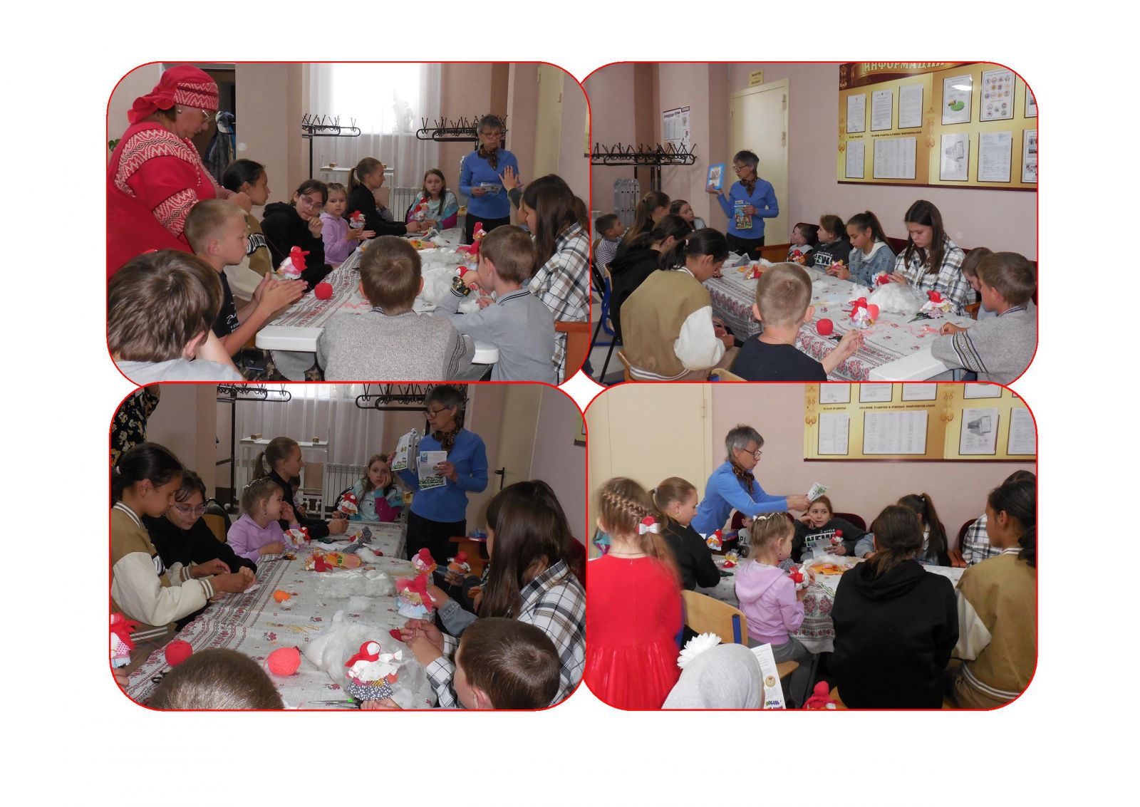 В рамках празднования дня семьи, любви и верности с учащимися в сельской библиотеке был проведен мастер-класс по изготовлению тряпичной куклы «Колокольчик», которая дарит хорошее настроение, защищает дом от нечистой силы, наполняет его миром, радостью и спокойствием. Используя пряжу, лоскутики ткани, под руководством мастерицы оберегов Ольги Мироновой в хорошем настроении и с добрыми мыслями каждый из участников мастер-класса создал свою неповторимую куклу-оберег. В завершение ребята получили на память красочные буклеты «Любовью дорожить умейте», где даны рассказ об истории рождения праздника, пословицы и поговорки о родителях, детях, а также список книг о семье, как величайшей человеческой ценности.