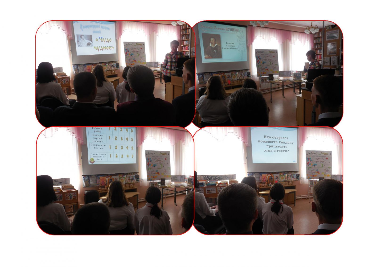 В день рождения Пушкина учащиеся школы приняли участие в литературном аукционе знаний «Чудо чудное», состоящий из трех лотов («Имена», «Творчество», «Сказочный предмет»), каждый из которых содержал по несколько вопросов. Ребята с большим успехом выполнили все задания, показав отличные знания произведений и биографии великого поэта. Кроме этого сельский библиотекарь обратила внимание ребят на книги, рассказывающие о жизни и творчестве стихотворца, а также его произведения. В заключение литературного аукциона победителям были вручены памятные сувениры.