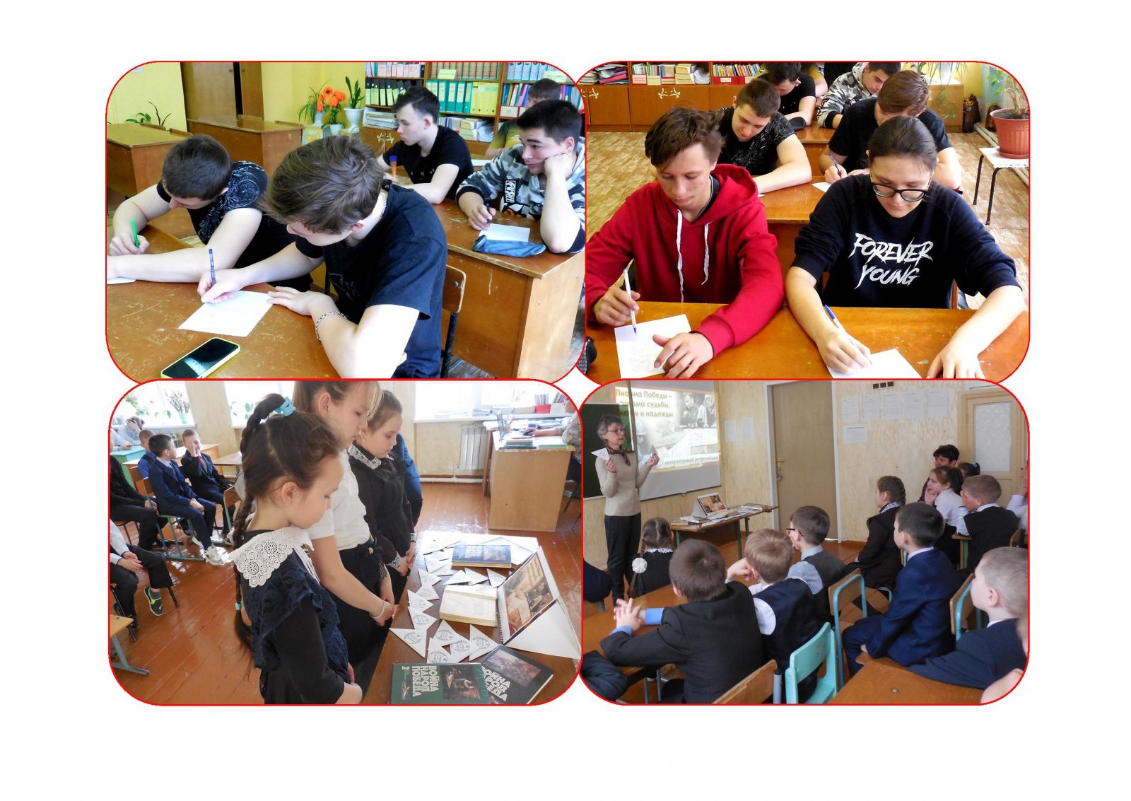 Сельский библиотекарь провела для учащихся и педагогов школы литературно-музыкальный ретро-взгляд «Письма Победы», где на фоне звучания военных песен, шёл рассказ о солдатских письмах с фронта в 1941-1945 годы. Письма писались в перерывах между боями, в госпиталях, на передовой, в землянках. Они –живое свидетельство мужества и героизма нашего народа в годы Великой Отечественной войны.Затем учащиеся школы приняли участие в акции «Письма Победы»: научились складывать письма-треугольники, где написали искренние слова поддержки российским воинам СВО. Все письма были переданы бугульминцам – добровольцам и демобилизованным СВО.