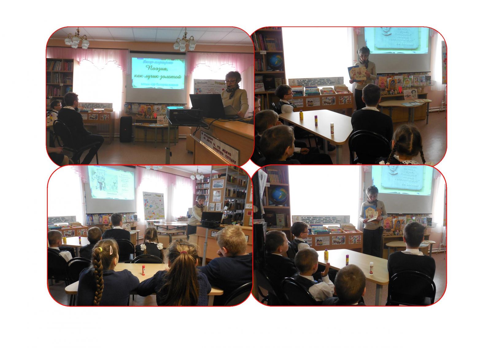 Для учеников 1-4 классов в сельской библиотеке состоялся вечер-портрет «Поэзия как лучик золотой» о творчестве Елены Благининой – одной из самых известных и любимых детских поэтесс. Она писала, искрящиеся юмором стихи, «дразнилки», «считалки», «скороговорки», песенки, сказки: удивительно добрые, как лучик солнца, звонкие, как капли дождя, нежные, как улыбка матери. Ребята с большим интересом слушали рассказ библиотекаря о жизни и творчестве Благининой, сопровождаемый показом слайдов, декламировали стихи автора о том, что дорого всем людям: про ветер и дождик, про радугу и берёзки, про сад и огород и, конечно, про их радости и горести детей.