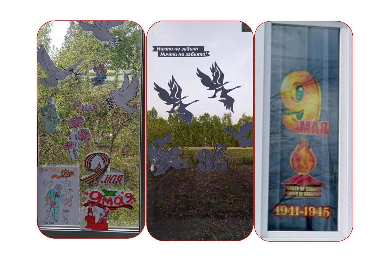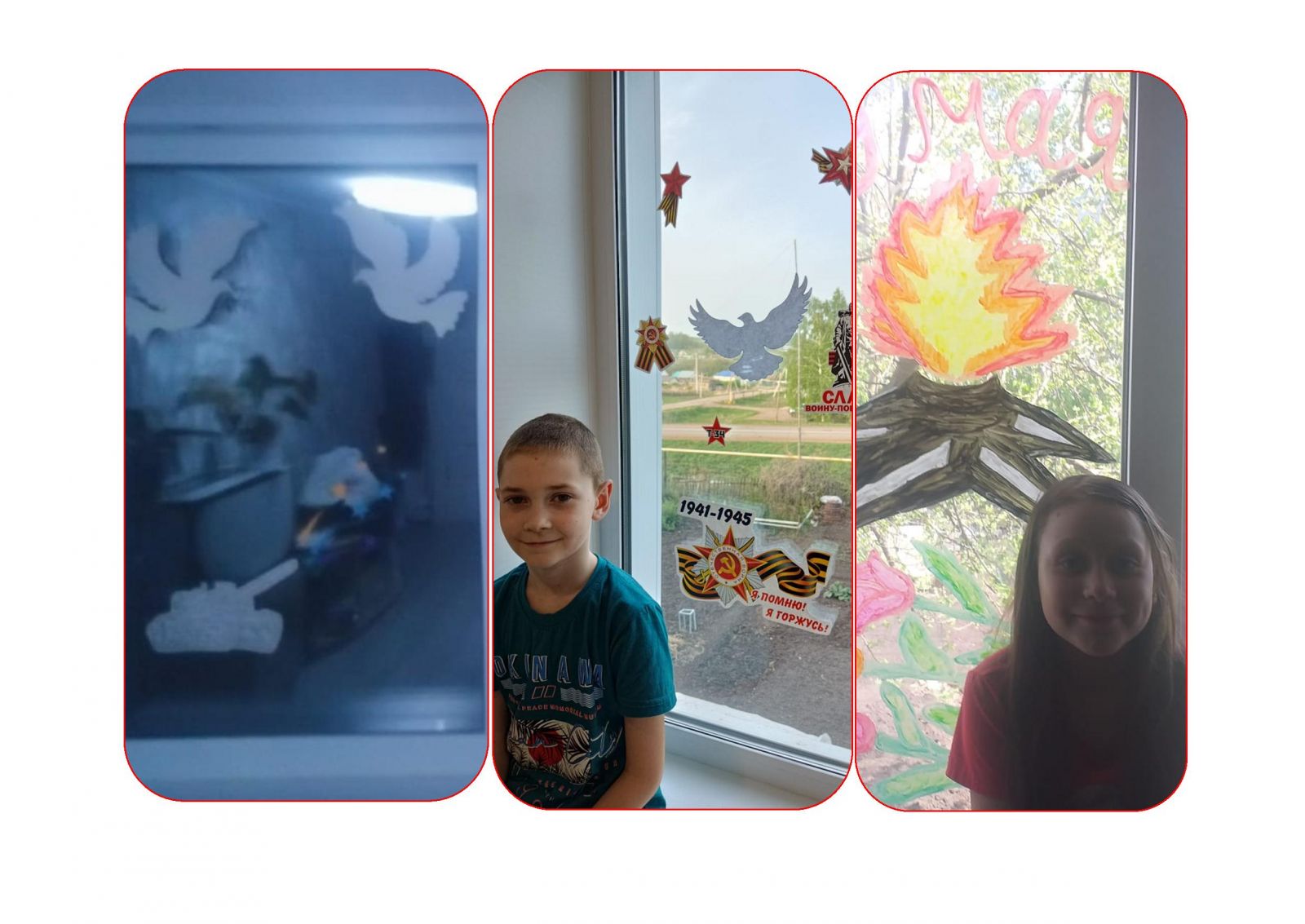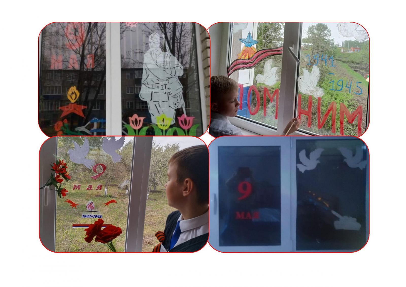 Ведь память жива!.В течение недели учащиеся нашей школы совместно с педагогами и родителями украшали окна символами Великой Победы – георгиевскими лентами, красными звездами, словами благодарности ветеранам ВОВ. Символы ВОВ: вырезали трафареты из бумаги, делали красочные аппликации, каждый проявлял фантазию по- своему.