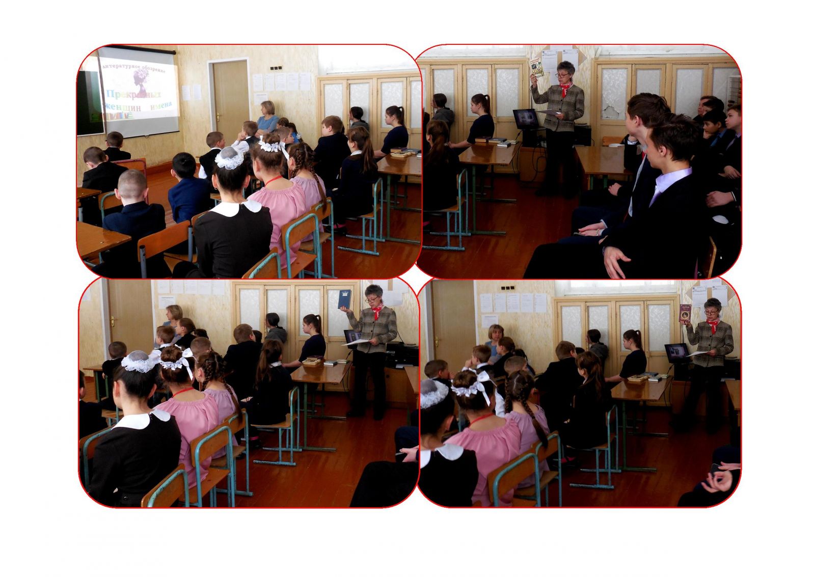 В преддверии праздника 8 мартасельский библиотекарь для учеников и педагогов провела литературное обозрение «Прекрасных женщин имена», где представила художественную литературу, в названии которой присутствуют женские имена (Л.Толстой «Анна Каренина», А.Афиногенов «Машенька», Н.Карамзин «Бедная Лиза», А.Алексин «Безумная Евдокия», И.Тургенев «Ася», А.Куприн «Олеся», П.Трэверс «Мэри Поппинс» и другие). Библиотекарь отметила, что писатель имена для своих героев выбирает тщательно и с осторожностью, потому как имя накладывает отпечаток на характер и поступки пусть и придуманных женщин.