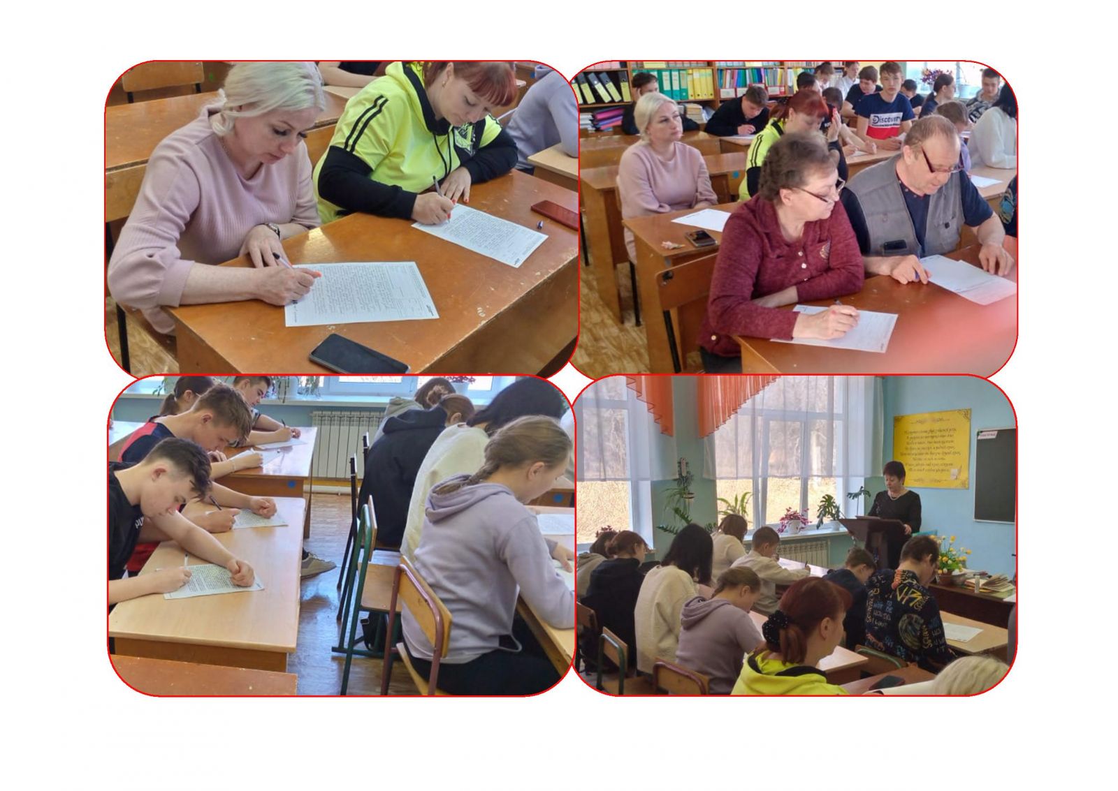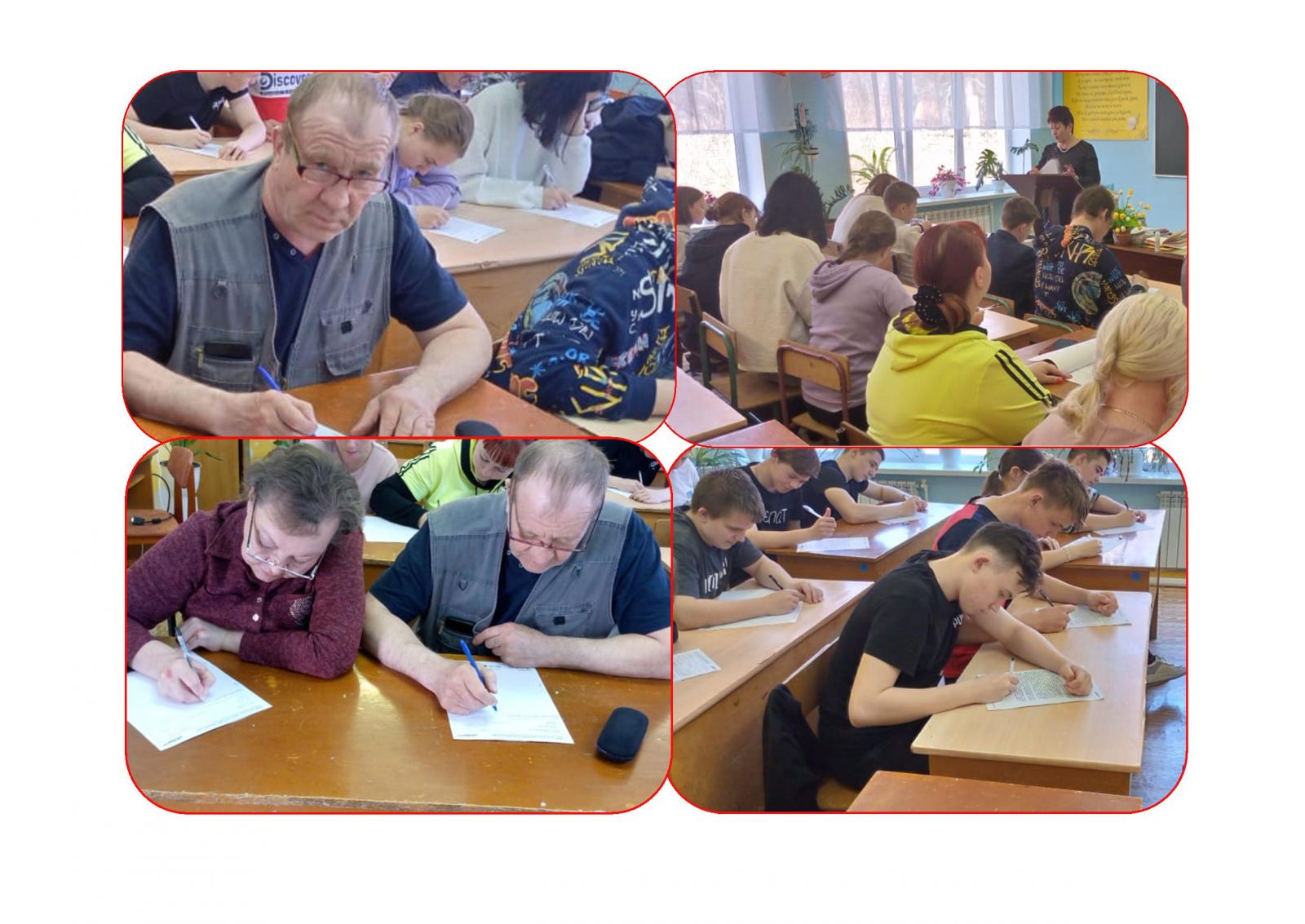 Учащиеся и педагоги школы приняли участие в просветительскойакции «Тотальный диктант», цель которойпоказать, что быть грамотным — важно для каждого человека; убедить, что заниматься русским языком нелегко, но увлекательно и полезно; объединить всех, кто умеет или хочет писать и говорить по-русски. Все участники акции отлично стравились с предложенным оргкомитетом текстом, повысив свой уровень орфографии.
