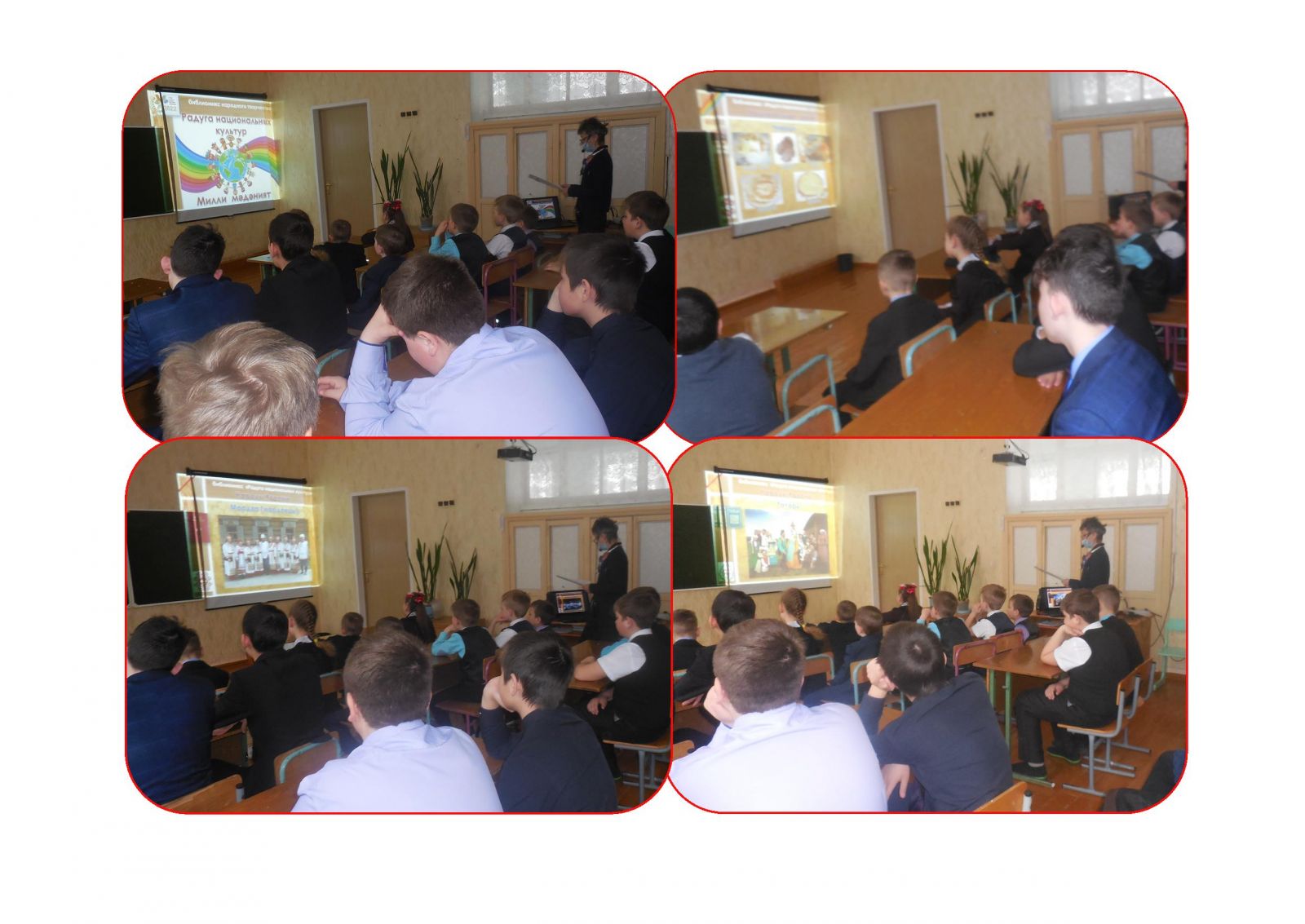 Сельский библиотекарь пригласила учеников школы на библиомикс народного творчества «Радуга национальных культур», который был разбит на 7 направлений по цветам радуга: красный (история возникновения нации мордвы, татар, чувашей, русских), оранжевый (национальные костюмы), желтый (знаменитые писатели), зеленый (народные пословицы), голубой (национальная кухня), синий (народные праздники), фиолетовый (традиционная музыка). Кроме этого на каждом направлении библиотекарь рекомендовала книги, рассказывающие о культуре, обрядах и традициях народов России. Во время мероприятия звучали песни и стихи, прославляющие дружелюбие в отношении к народам, населяющих российское государство.