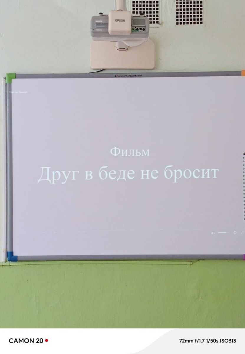 15 октября ученики начальных классов посмотрели фильм «Друг в беде не бросит». После обсуждения пришли к выводу: нельзя осуждать человека за совершённый проступок, надо помочь ему осознать и исправить свою ошибку. Бывает очень важно вовремя прийти на помощь, поддержать человека в трудной ситуации. Даже если он поступил нечестно, всё равно не оставлять его один на один со своей виной. И если он готов признать ошибку и исправить её, поддержать, приложить все усилия, чтобы вытащить друга ради того, чтобы на одного честного человека в мире стало больше.