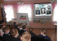 Ученики 1-4 классовбыли приглашенына вечер-портрет «Евгений Чарушин. Прекрасное пленяет навсегда». Ребята познакомились с основными этапами жизни писателя, рассказ сельского библиотекаря сопровождался слайдами, которые содержали познавательные, с необычайным стилем иллюстрации к книгам писателя, нарисованные им самим и отражающие его цельный, единый внутренний мир. В заключение юные читатели с большим удовольствием листали сборники писателя и смотрели мультфильм «Чуффык» (1993 г.), снятый по мотивам сказки Е.Чарушина.