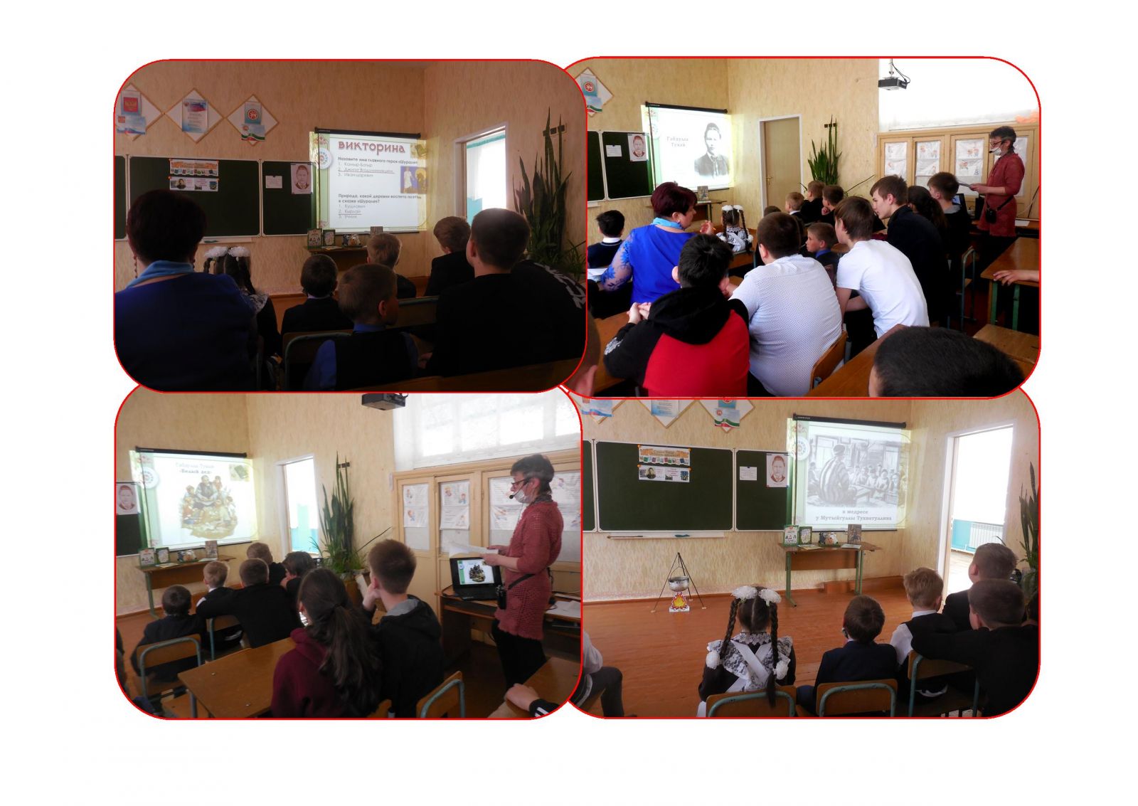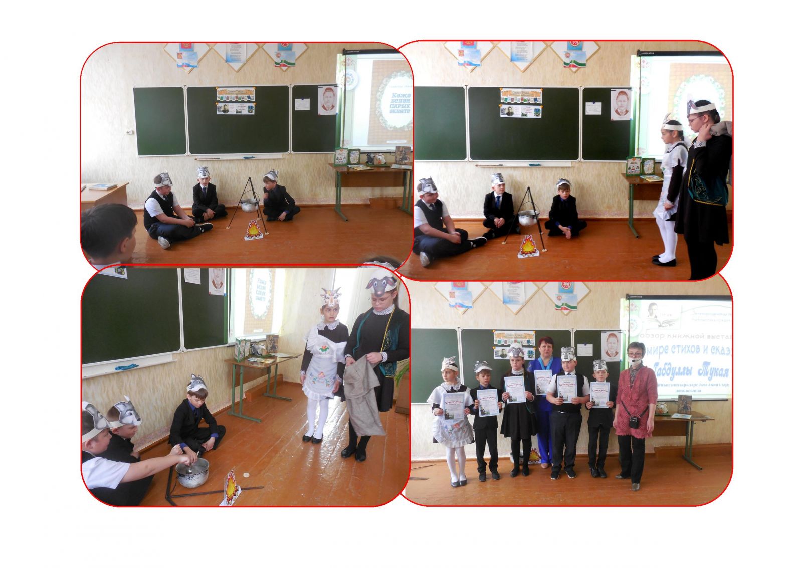 В рамках празднования Года родных языков и народного единства в Татарстане сельский для учеников 1-9 классов библиотекарь провела обзор книжной выставки «В мире стихов и сказок Габдуллы Тукая» – «Тукайның шигырьләре һәм әкиятләре дөньясында», посвященный юбилею поэта. Биографические факты жизни и творчества Тукая, чтение его стихов сопровождались музыкальными фрагментами из балета Ф. Яруллина «Шурале». Библиотекарь обратила внимание присутствующих на выставку, состоящую из разных печатных изданий на татарском, русском и английском языках. Под руководством учителя татарского языка Сафиуллиной А.Ф. был подготовлен и показан отрывок из поэтической сказки «Коза и Баран», исполненный на татарском языке, а юным артистам была выражена благодарность за прекрасную инсценировк