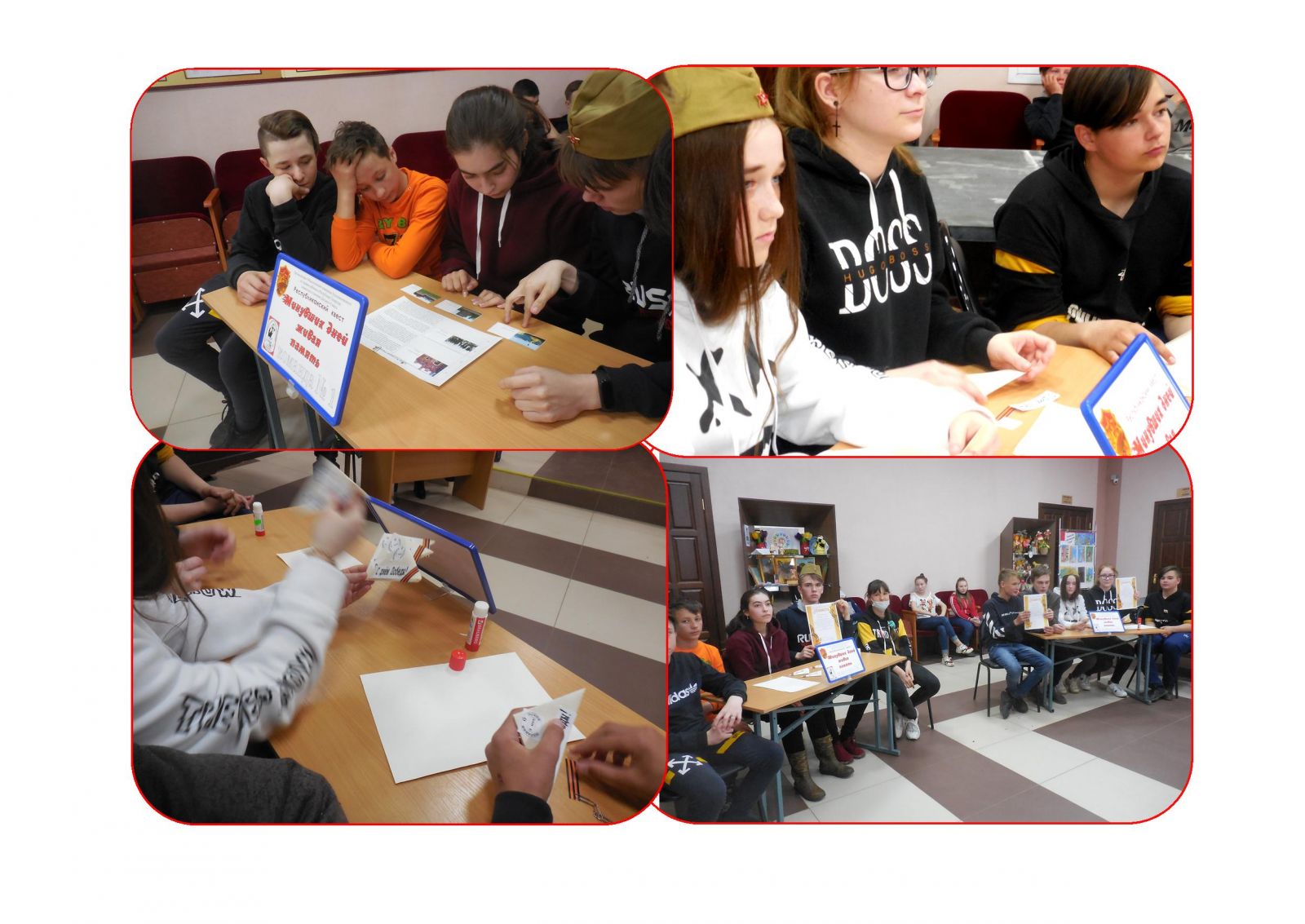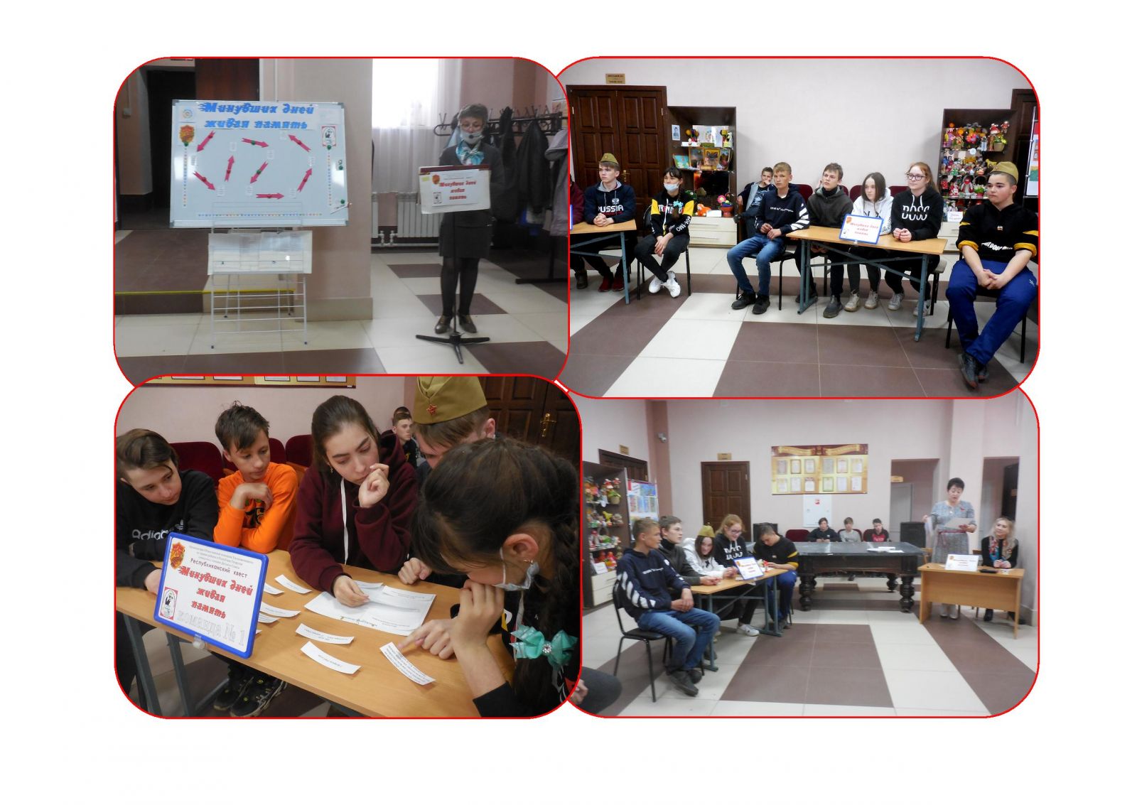 В Зеленорощинской сельской библиотекепроведена историко-познавательная игра «Минувших дней живая память» в рамках одноименного Республиканского квеста (организаторы – Общественный помощник Уполномоченного по правам ребенка в Республике Татарстан совместно с членами Детского Совета).Ученики 7-9 классов были поделены на 2 команды, они выполняли задания, тема которых соответствовала названию виртуальных станций («Историческая», «Города-герои», «Памятники, посвященные Великой Отечественной войне», «Полководцы Великой Отечественной войны», «Земляки – Герои Великой Отечественной войны», «О войне мы узнали из книг», «Песни нашей победы», «Военные письма»). Участники показали хорошие знания не только по датам военной поры, но и раскрыли свои познания в области краеведения, фронтовой прозы, поэзии и музыкальных произведений. На конечной станции квестаученики научились складывать солдатские треугольники – письма бойцов Великой Отечественной войны. Унося их домой, участники историко-познавательной игрыбыли уверены: воспоминания об этом периоде не должны исчезнуть из нашей памяти, нужно помнить о подвиге советских солдат и тружеников тыла, которые, не смотря на все тяготы и лишения, добыли не только нашей стране, но и многим странам Запада великую Победу над фашистской армией.