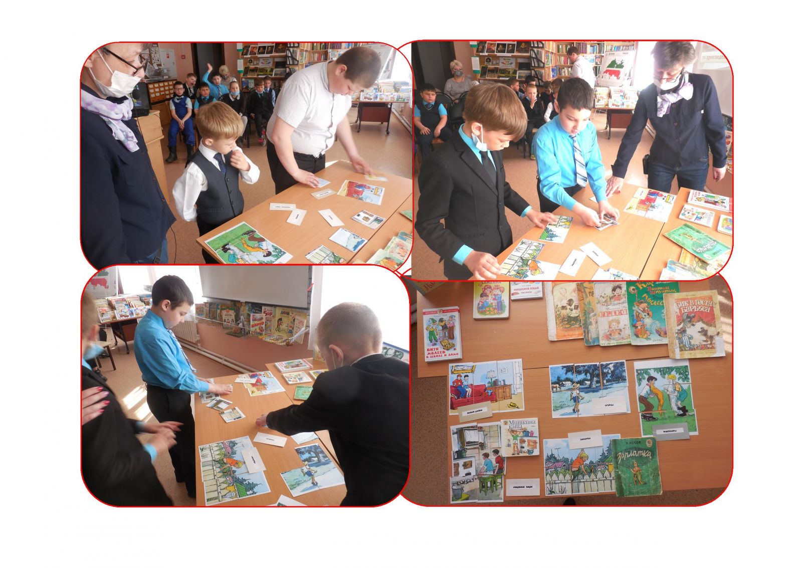В сельской библиотеке ученики 1-4 классов отправились в литературное путешествие«Находчивые» по произведениям Николая Носова. Сначала библиотекарь рассказала о писателе и его творчестве, далее ребята отвечали на вопросы по рассказам«Затейники», «Фантазеры», «Живая шляпа», «Огурцы», «Мишкина каша», затем читатели составляли пазлы – иллюстрации к этим произведениям. В заключение все с удовольствие посмотрели фрагмент мультфильма «Бобик в гостях у Барбоса» по мотивам сказки Н. Носова, получив очередное домашнее задание: вспомнить и записать окончание этого произведения.