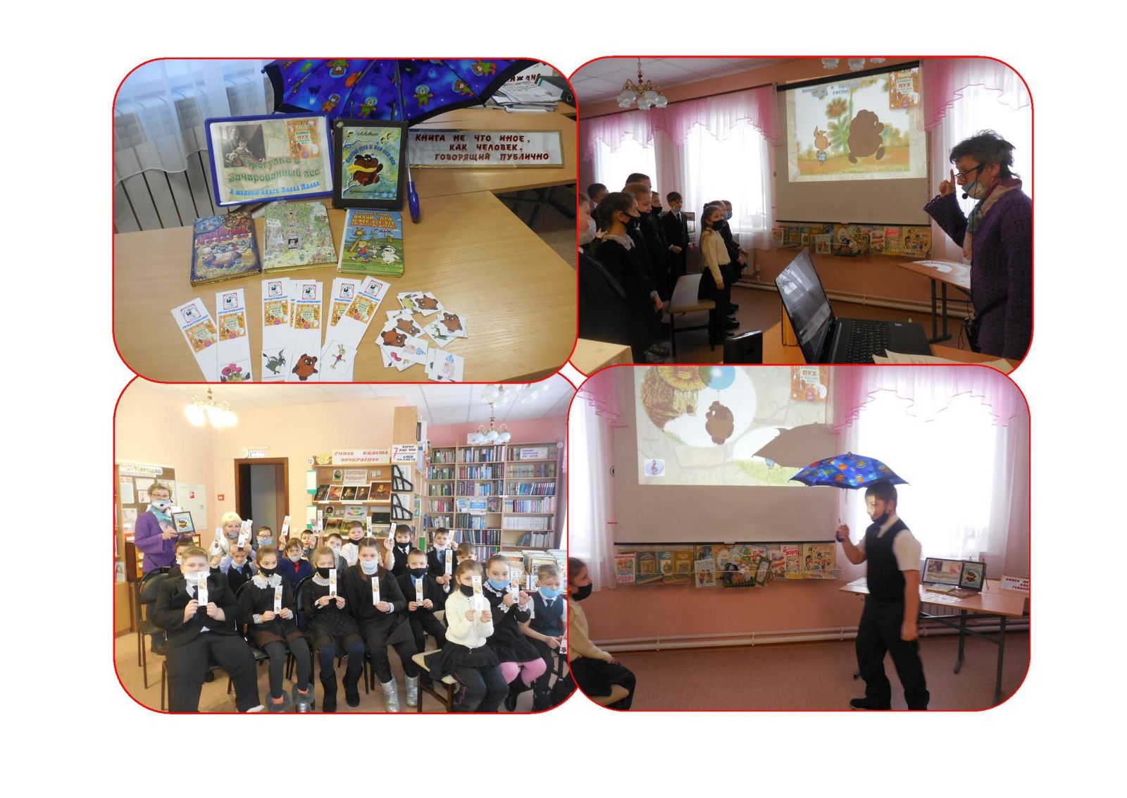 В Зеленорощинской сельской библиотеке-филиале №23 для учеников 1-4 классов состоялся литературный час «Прогулка в Зачарованный лес» к юбилею выхода в свет сказки Алана Милна «Винни Пух». Библиотекарь не только познакомила ребят с жизненными фактами писателя, но и предложила поучаствовать в викторине по книге писателя. В заключение ребята с большим удовольствием посмотрели отрывки из рисованного фильма «Винни-Пух идёт в гости», созданного на студии «Союзмультфильм» в 1971 году, а также оформили себе на память книжные закладки с изображениями главных героев сказки: Винни-Пуха, Пяточка, Ослика и Совы.