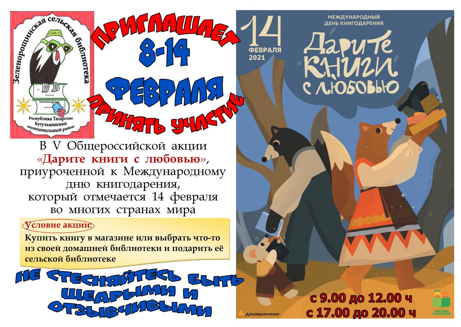 Приглашаем всех принять участие в V Общероссийской акции «Дарите книги с любовью», приуроченной к Международному дню книгодарения, который отмечается 14 февраля во многих странах мира