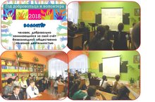 На обзор «Спешите делать добрые дела» сельский библиотекарь пригласила учеников 5-9 классов. Их внимание было обращено на выставку, где расположились книги, которые не только развлекают, но и заставляют сопереживать трагические события, помогают понять, что такое милосердие, помощь, любовь, чужая боль, поддержка (не только материально, а просто в проявлении человеческих чувств): «Цветик-семицветик» В.Катаева, «Белый Бим Чёрное ухо» Г.Троепольского, «Чучело» В.Железников, «Девочка со спичками» Г.Андерсена, «Тим Талер, или Проданный смех» Д.Крюса, «Солнечное затмение».А.Лиханова, «Та сторона, где ветер» В.Крапивина, «Ночевала тучка золотая» А.Приставкина, «Безумная Евдокия» А. Алексина. В заключение библиотекарь отметила, что Год волонтера и добровольца заканчивается, но следует продолжать делать мир лучше.