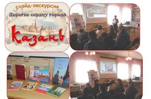 В канун праздника Дня России в Зеленорощинской сельской библиотеке в рамках виртуальной экскурсии «Дорогие сердцу города» участники школьного трудового лагеря совершили заочное путешествие по столице Республики Татарстан – Казани. Из рассказа библиотекаря, который сопровождался показом слайдов, присутствующие узнали историю о возникновении одного из крупнейшего экономических, политических, образовательных, культурных и спортивных центров России города. Особое внимание библиотекарь уделила Казанскому Кремлю с его историческими и архитектурными памятниками, входящими в число объектов Всемирного наследия ЮНЕСКО. Кроме этого внимание читателей было обращено на отражения города в литературе и искусстве, например, в произведениях Г.Тукая. Р.Миннуллина, Х.Туфана, С.Сайдашева, Е.Баратынского, Н.Фешина и других.В заключение была проведена викторина «Вопросы дедушки Краеведушки» на выявление знатока исторических фактов Казани.Во время мероприятия звучали татарские народные мелодии, песни Ю.Таран «Звезда России», «Туган як» («Край родной») на русском и татарском языках.