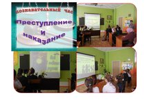 Для учеников 6-9 классов сельский библиотекарь Ишкова И.В. подготовила познавательный час «Преступление и наказание», во время которого ребята познакомились с некоторыми статьями уголовных и административных правонарушений. Почему люди совершают преступления? Какие виды ответственности есть в Кодексе РФ? В чем основные причины правонарушений? Каков психологический портрет потенциального нарушителя порядка? На эти и другие вопросы отвечали ученики, разбирая приведенные библиотекарем примеры. В заключение была презентована книга Михаила Скрябина «В тени зелёной беседки», на страницах которой автор рассказал, как в определенных ситуациях обыкновенные шалости могут легко перерасти в серьезные проступки или преступления.
