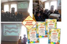 На итоговой встрече «Урок культуры» библиотекарь познакомила ребят 1-4 классов и их родителей с результатами выполненных заданий в «Культурном дневнике школьника», с количеством посещений мероприятий и книговыдачей в период с ноября 2015 по май 2016 года. Было отмечено, что юные читатели с удовольствием участвовали в проводимых литературных вечерах, викторинах, познавательных часах и конкурсах. Но самыми активными оказались Гадельшина Аделина (3 класс), Миассаров Артур (2 класс), Притчик Ольга (3 класс), Гадельшина Алсу (4 класс). Они не только часто посещали сельскую библиотеку, выполнили все задания в «Культурном дневнике школьника», но и побывали с родителями в Бугульминском краеведческом музее, в кинотеатре «Мадагаскар». Победителям и их родителям были вручены «Грамоты активных участников проекта» и сувениры на память.
