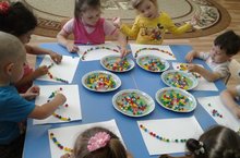 Знакомство детей с техникой «пластилинография» прошел сегодня в младшей группе. Целью данной образовательной деятельности является обучить детей передавать образ солнышка; продолжить формировать навыки работы с пластилином: раскатывание прямыми и круговыми движениями рук. Учить прикреплять готовую форму на плоскость приемом равномерного расплющивания по поверхности основы… Чтобы облегчить ребенку освоение новых навыков, воспитатели делают этот процесс доступным, интересным, увлекательным, педагогически тонко и ненавязчиво. При этом учитывается возрастная особенность детей 3-го, 4-го года жизни - стремление к самостоятельности.