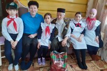 В предверии празднования Дня Защитника Отечества тимуровцы Аксунской СОШ поздравили ветерана ВОВ Мулюкова Котдуса с праздником и показывали ему праздничный концерт.