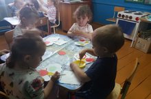 Цель: закреплять умение детей раскладывать готовые формы разного цвета и размера, формировать умение наклеивать готовые формы фруктов; закреплять навыки аккуратного обращения с клеем и раздаточным материалом; воспитывать интерес к аппликации.