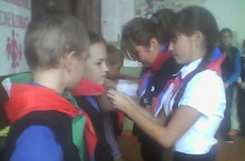 С учениками 2 и 4 класса провели сбор « Салют, СНТ!». Во время сбора классный руководитель напомнил о том, что 15 сентября это День рождения СНТ. Потом играли « Наши игры», пели «Наши песни», провели беседу «Наши беседы» по программе «Все вместе» (Классное содружество). СНТ пополнился новыми членами.